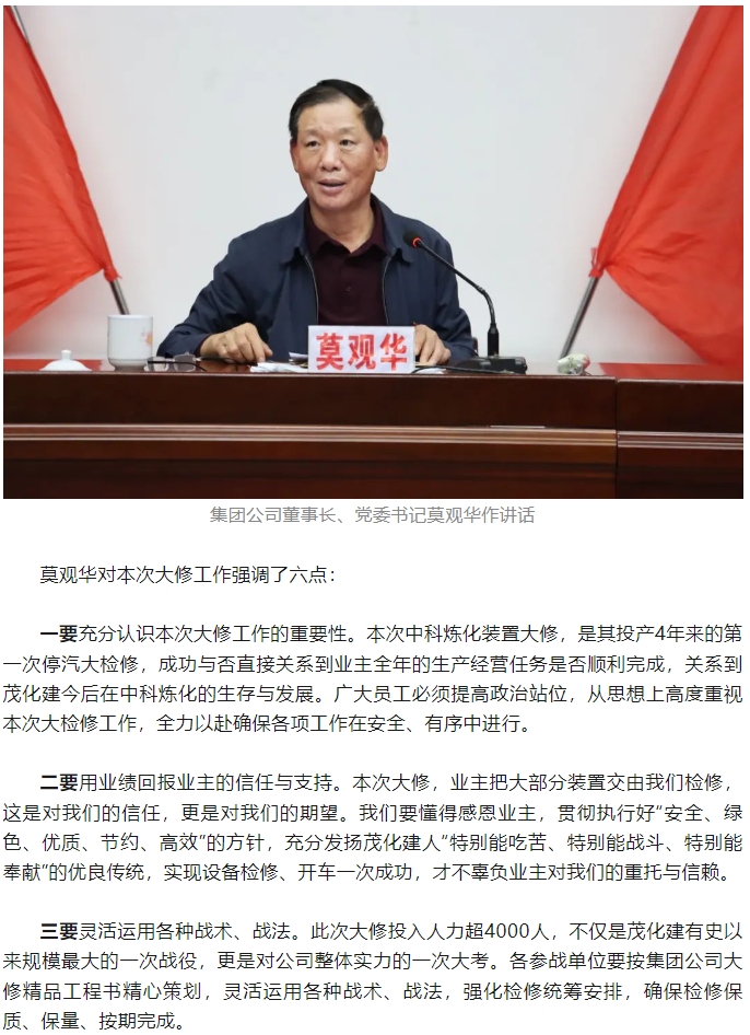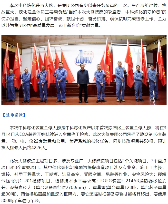 勠力同心擂響戰鼓 千軍萬馬出征大修——集團公司2024年中科煉化裝置大修動