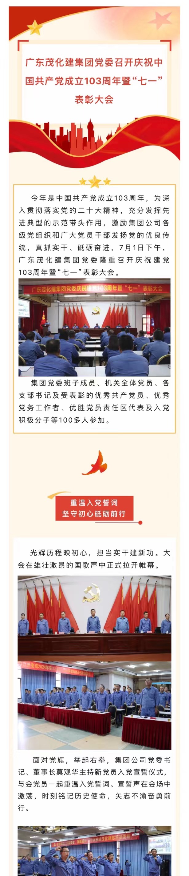 廣東茂化建集團黨委召開慶祝中國共産黨成立103周年🧑🏽‍🎄暨“七一”表彰大會