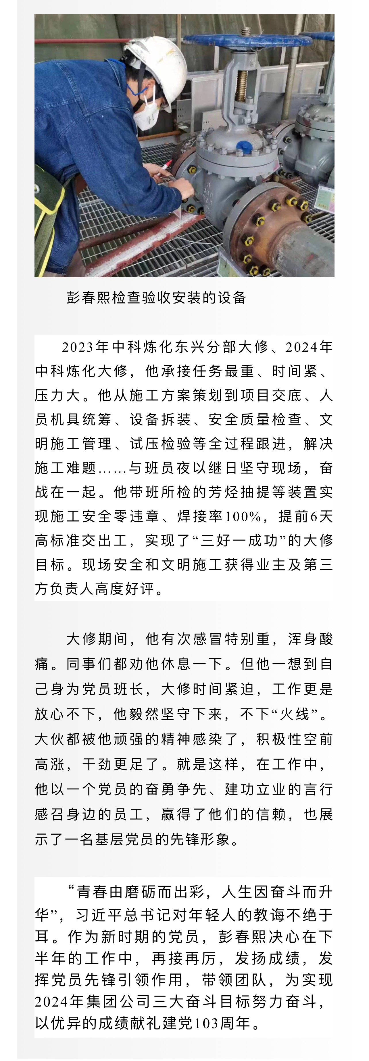 黨旗照耀我奮鬥——記集團公司優秀共産黨員彭春熙⛹🏻‍♀️