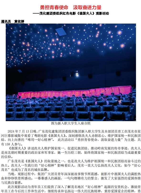 勇擔青春使命 汲取奮進力量 ——茂化建團委組織紅色電🛌🏻影《谯國夫人》觀影活動