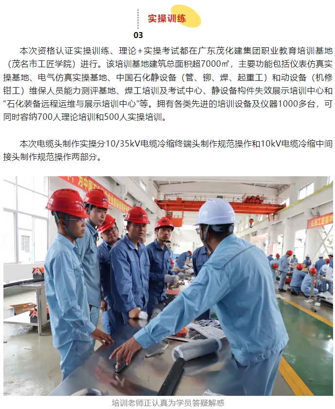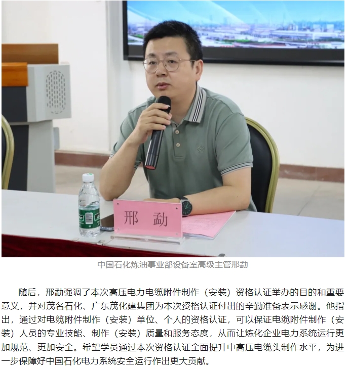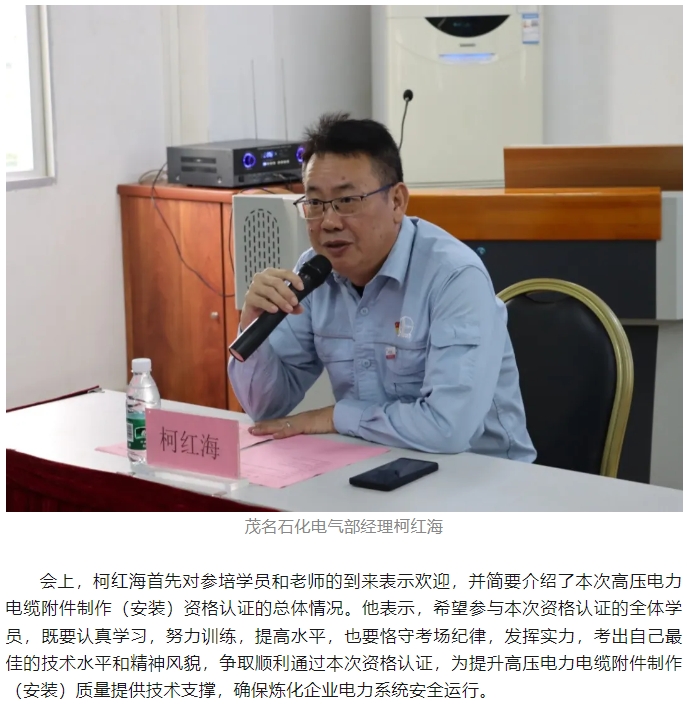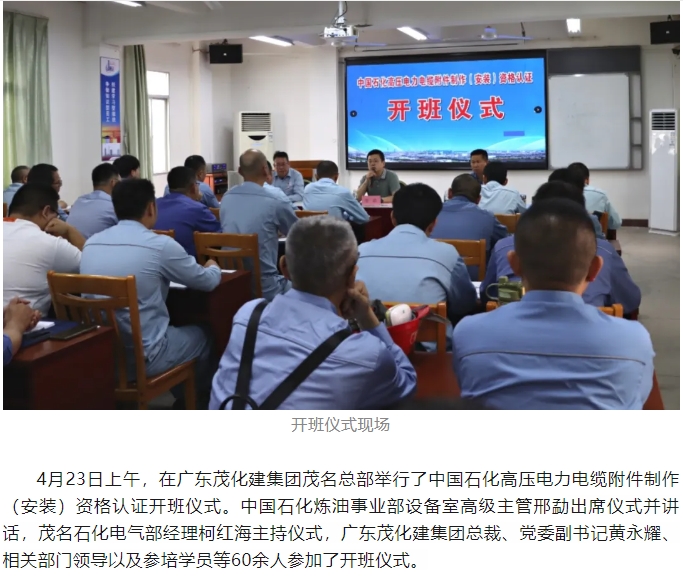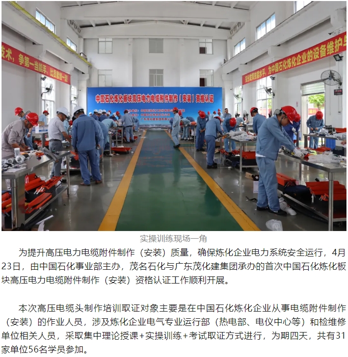 首(shou)次中(zhong)國石(shi)化煉(lian)化闆(pan)塊高(gao)壓電(dian)力電(dian)纜附(fu)件制(zhi)作(安(an)裝)資(zi)格認(ren)證在(zai)茂名(ming)順利(li)舉行(hang)