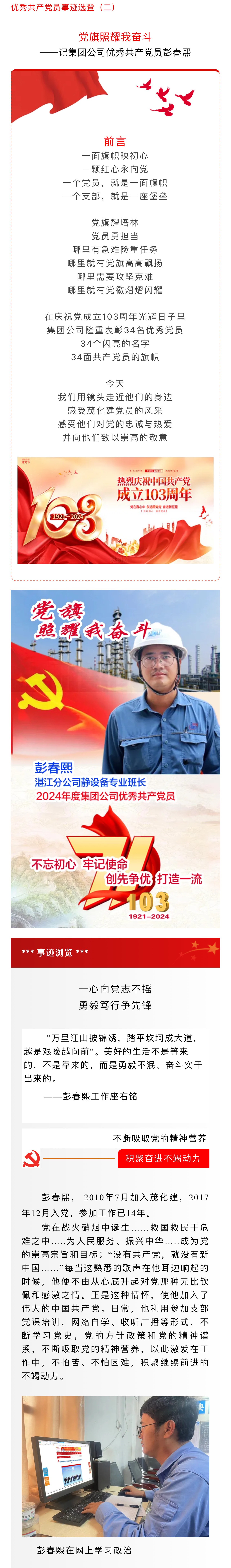 黨(dang)旗照耀(yao)我奮鬥(dou)——記集團(tuan)公司優(you)秀共産(chan)黨員彭(peng)春熙