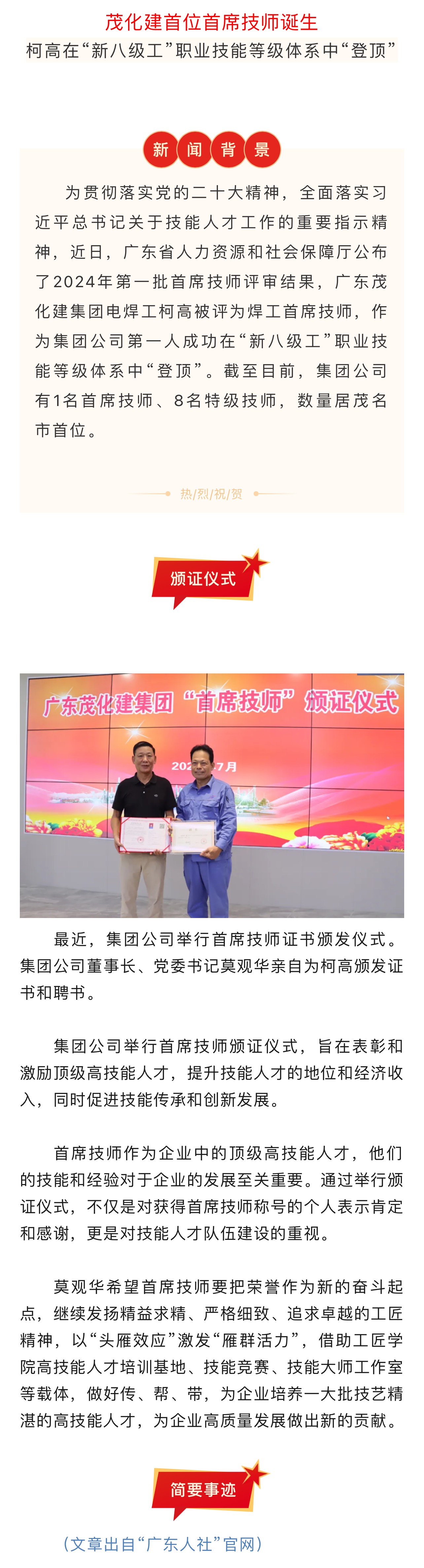 喜(xi)報|茂(mao)化建(jian)首位(wei)首席(xi)技師(shi)誕生(sheng)!