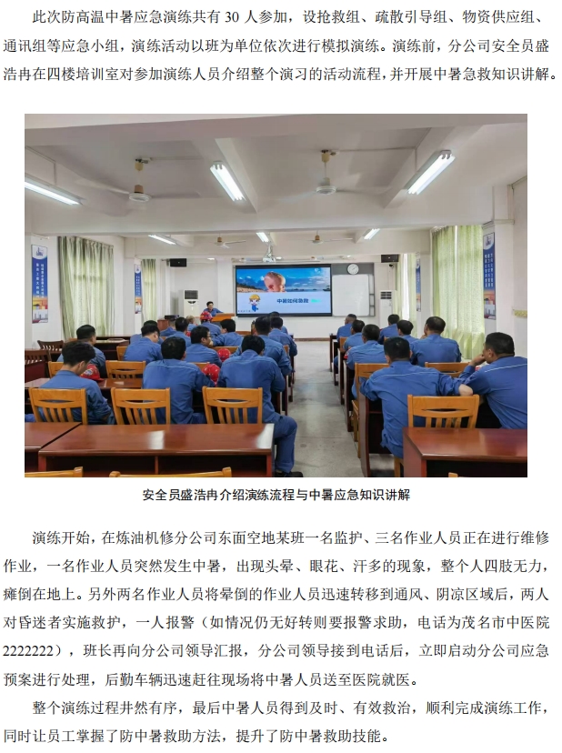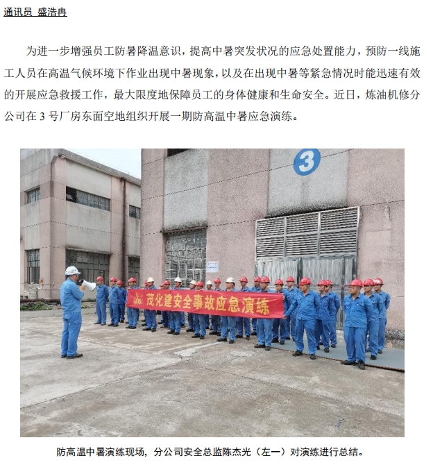 煉油機(ji)修開展(zhan)防高溫(wen)中暑應(ying)急演練(lian)